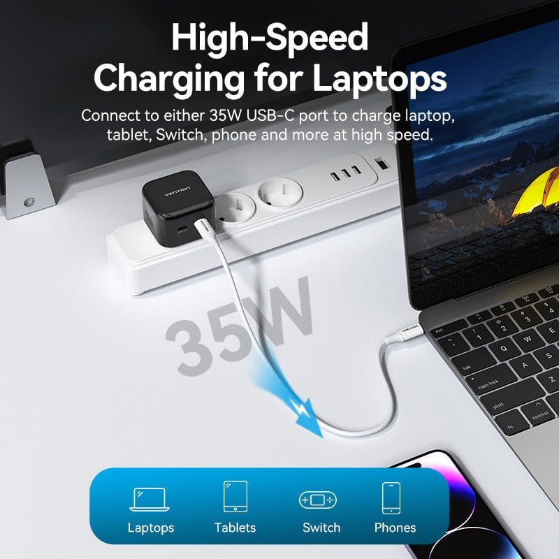 Vention 2-Port USB(C+C) GaN Charger (35W/35W) EU-Plug