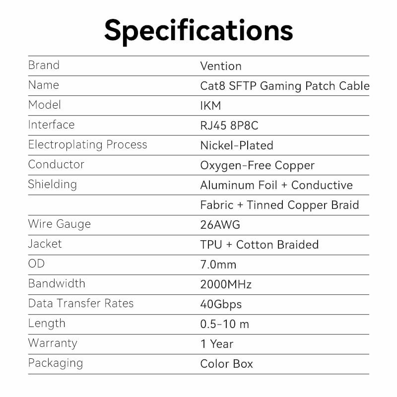 Cáp Mạng LAN Cat8 SFTP VENTION IKM (40Gbps, 2000MHz)