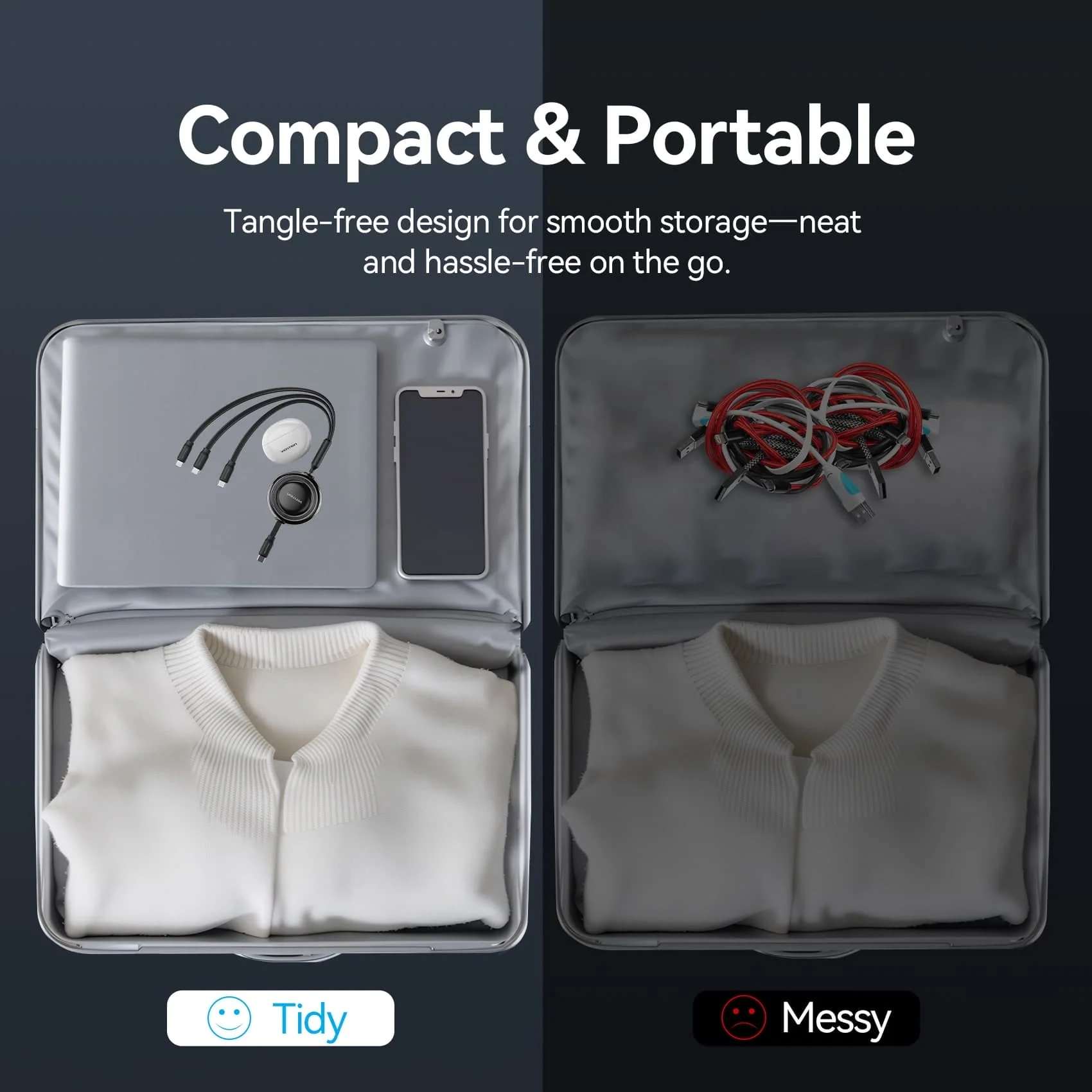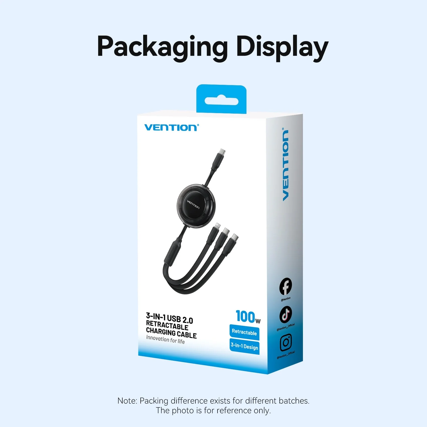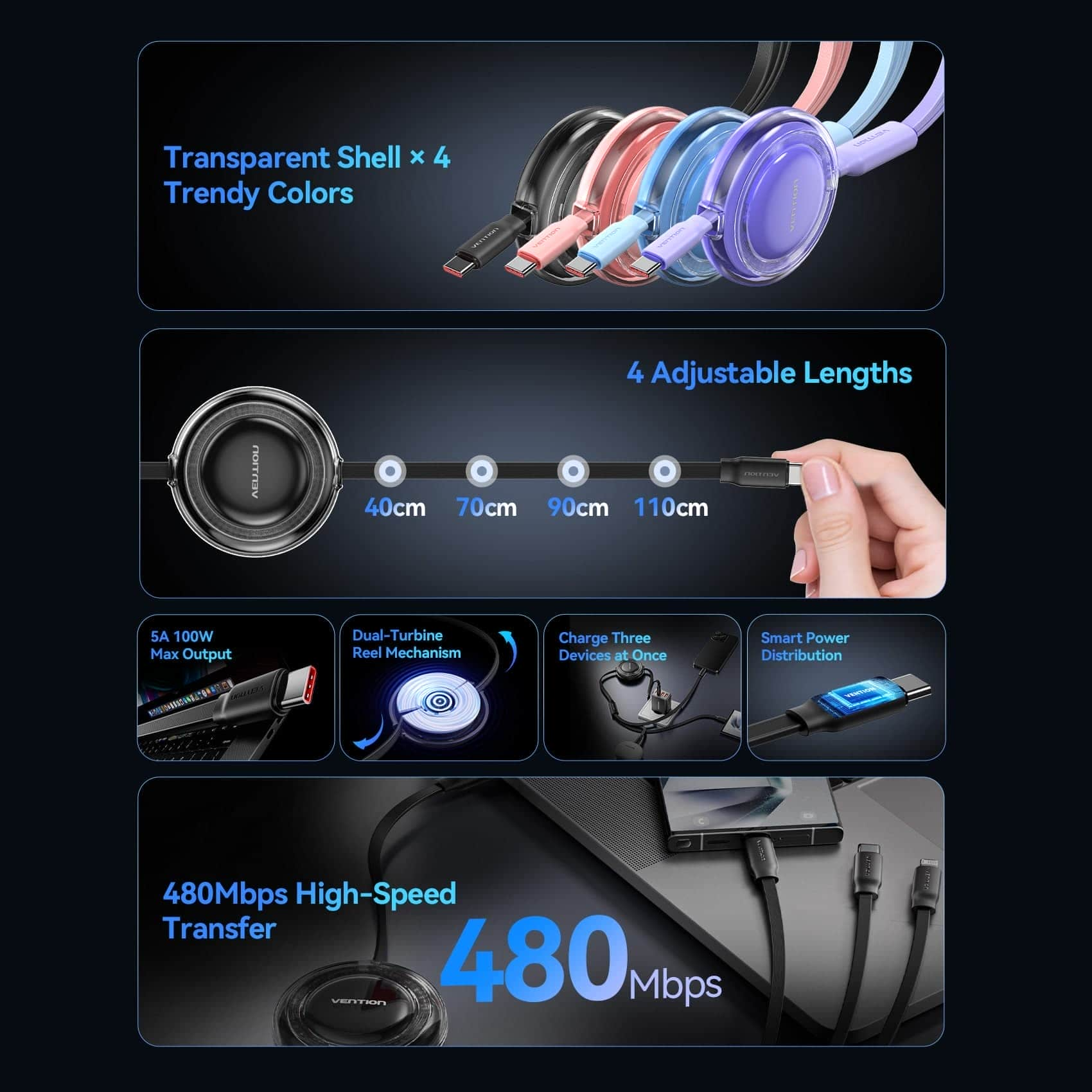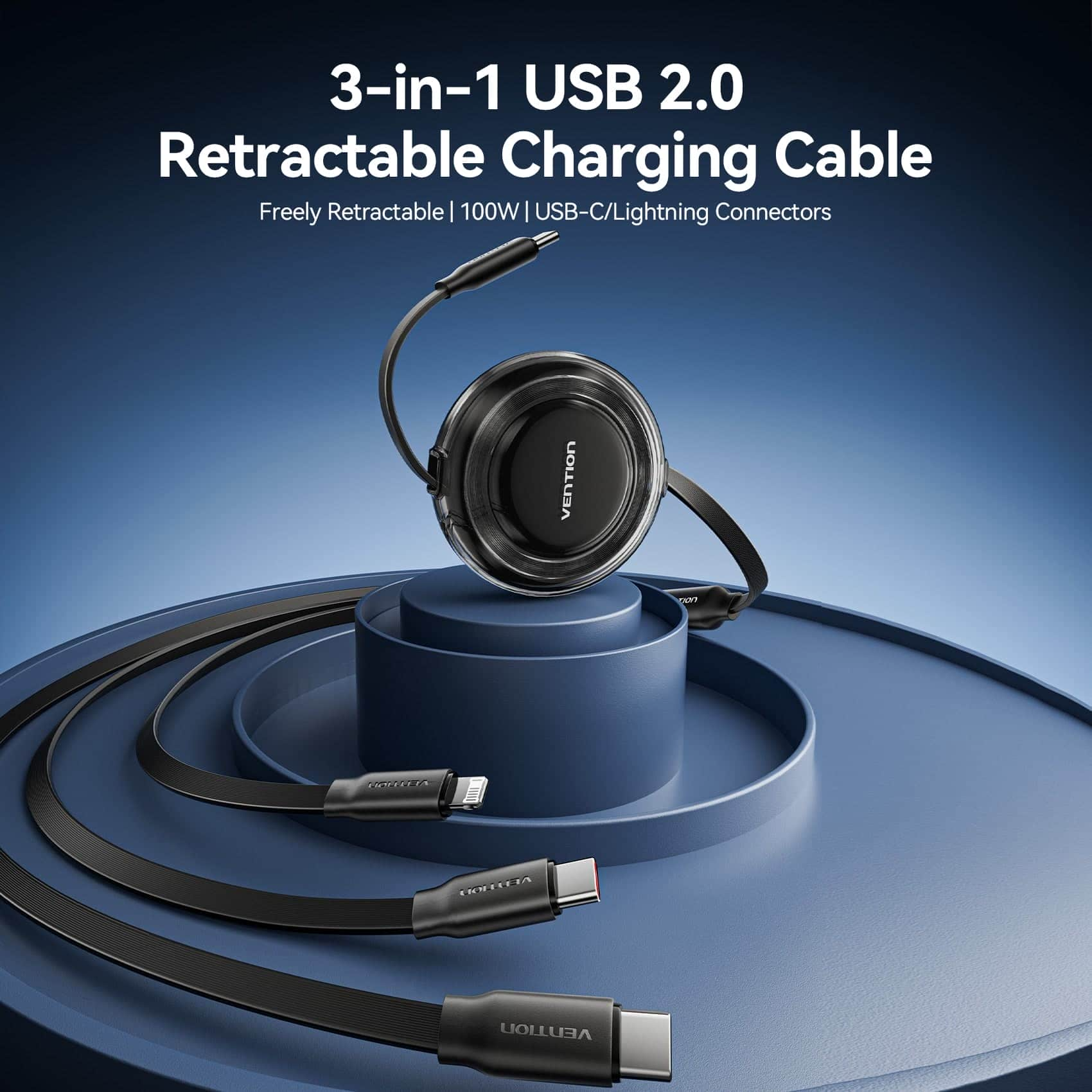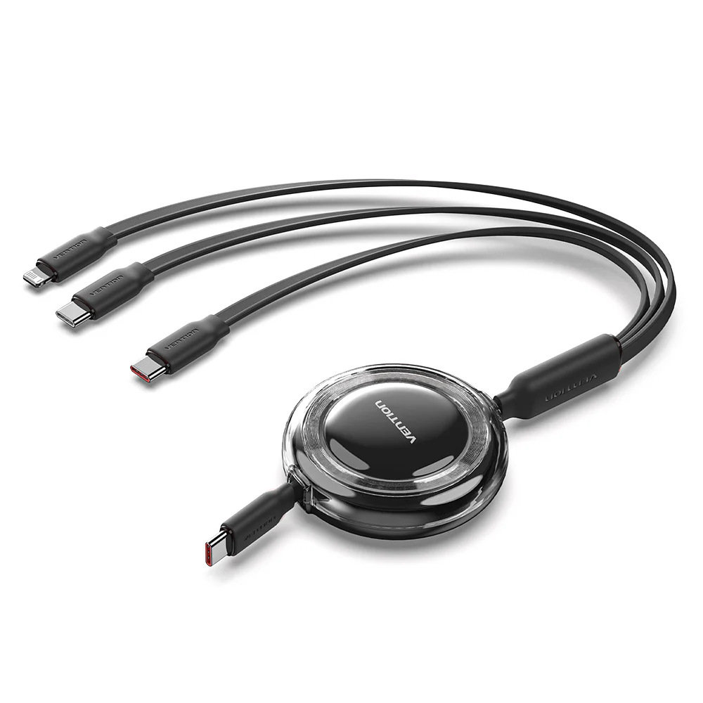 Cáp Sạc Dây Rút Đa Năng 3-in-1 C to L+2C VENTION TRK 100W (1.1m, 5A, 480Mbps)