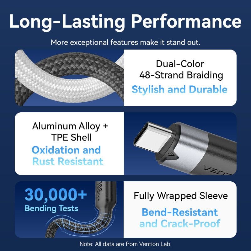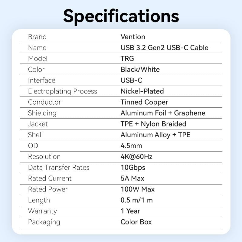 Cáp Sạc Nhanh C to C VENTION TRG 100W (4K@60Hz, USB3.2 Gen2, 10Gbps, 5A)