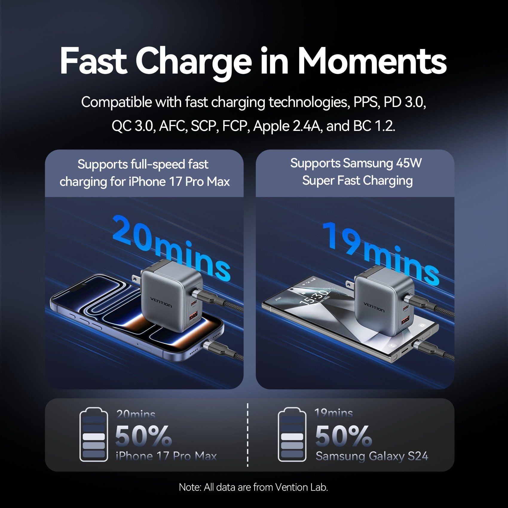 Protocols: QC3.0 / QC2.0 / PD3.0 / PD2.0 / PPS / PE2.0 / SCP / FCP / Apple 2.4A / AFC / BC 1.2/ DCP