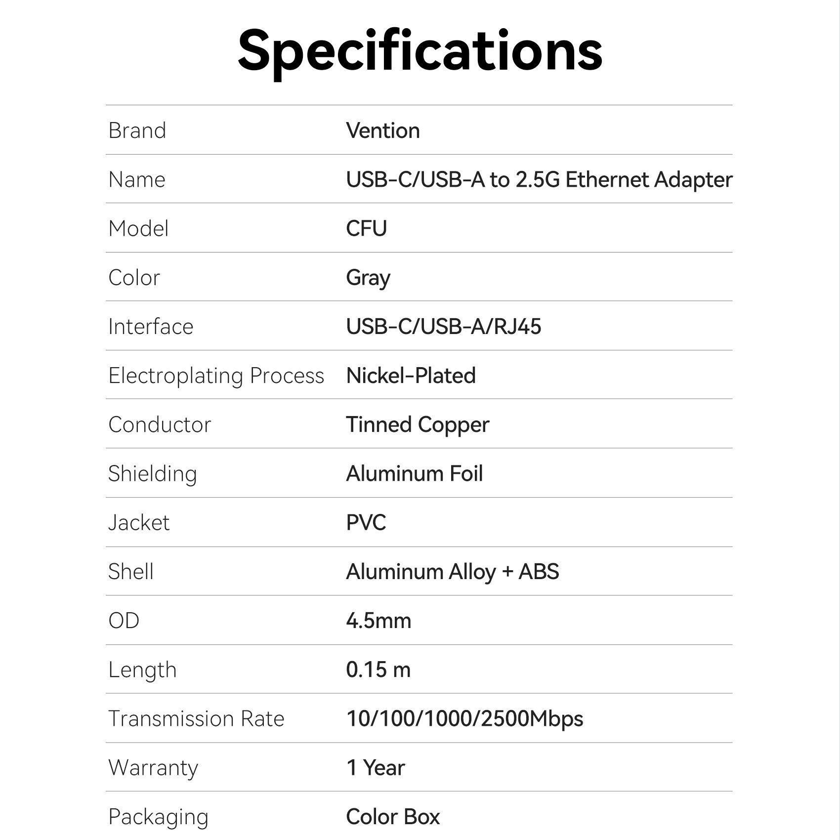 Đầu Chuyển Mạng LAN Type-C/USB-A to 2.5G Ethernet VENTION CFU (2.5Gbps, 0.15m)