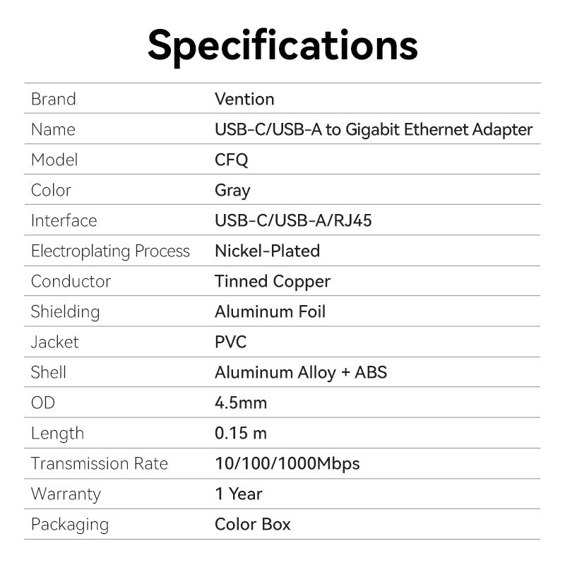 Đầu Chuyển Mạng LAN Type-C/USB-A to Gigabit Ethernet VENTION CFQ (1Gbps, 0.15m)