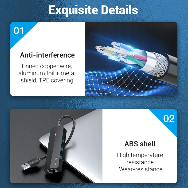 Hub Mở Rộng Kết Nối Đa Năng 4-in-1 VENTION CHN (USB3.0*3, 1*RJ-45 Gigabit Ethernet)