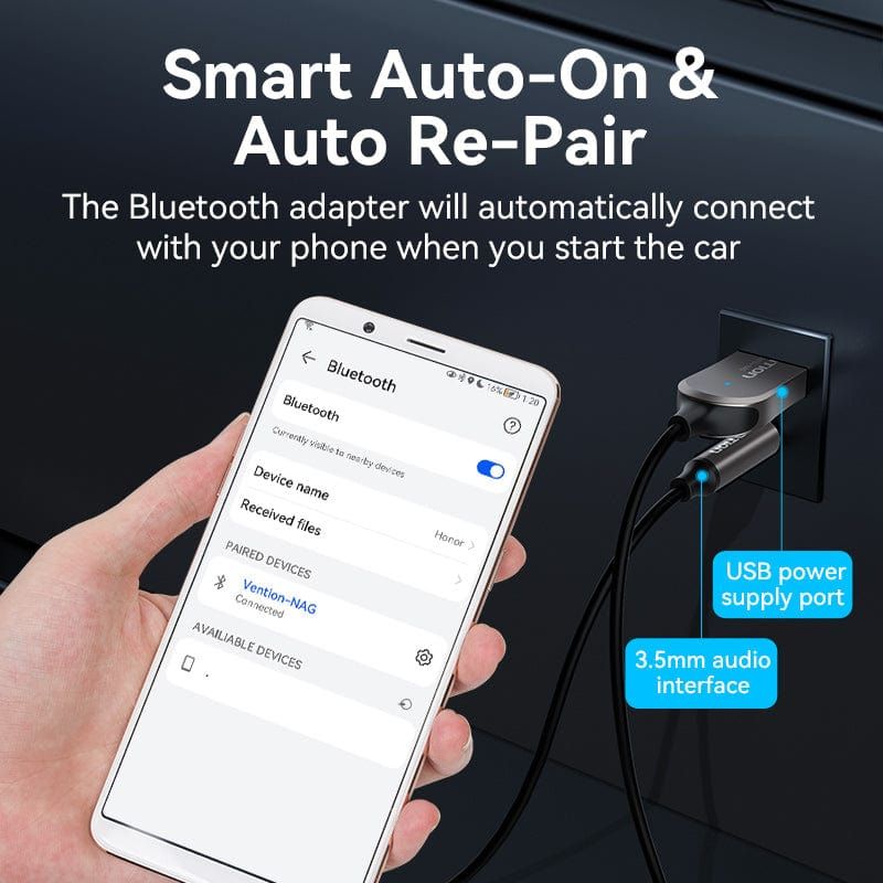 USB Bluetooth With Coiled Cable 1.5M VENTION NAG (Bluetooth v5.0, Tích Hợp Mic)